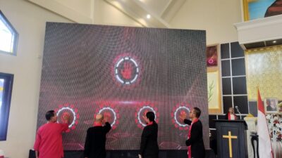 Penatua Jimmy Sitanala dari MPK Pulau Ambon Timur, Ketua Majelis Jemaat dan Pendeta Jemaat GPM Toisapu serta Perwakilan Panitia, gunakan sensor sentuh (touch sensor) atau infrared frame yang memungkinkan layar merespons sentuhan tangan sebagai tanpa dibukanya secara resmi Persidangan Ke – 41 Jemaat GPM Toisapu.