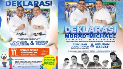 Ambon, Salawaku-Besok Rabu 11 September 2024, di Lapangan Merdeka Ambon, pasangan calon (Paslon) Gubernur dan Wakil Gubernur Maluku tahun 2024 Murad Ismail – Michael Wattimena (MI-BMW) akan dideklarasikan.