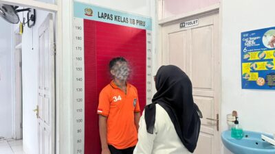 Piru, Salawaku – Lembaga Pemasyarakatan (Lapas) Kelas IIB Piru laksanakan skrining kesehatan awal terhadap seorang Tahanan baru yang masuk setelah serah terima dari Kejaksaan Negeri Seram Bagian Barat, Kamis (8/1). Pemeriksaan ini dilakukan sebagai prosedur wajib untuk memastikan kondisi kesehatan awal serta mendeteksi potensi risiko penyakit sejak dini.