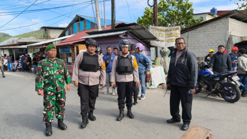 Ambon, Salawaku– Personel Gabungan Polresta Pulau Ambon dan Pp Lease dan Polda Maluku dibantu TNI serta Pemert Kota Ambon bergerak cepat mengamankan tawuran antar kelompok pemuda di kawasan RW 019, Negeri Batu Merah, Kecamatan Sirimau, Kota Ambon.