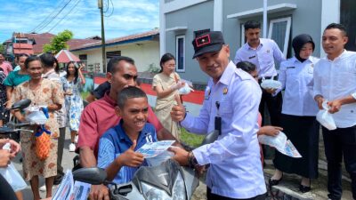 Adapun dalam pelaksanaan baksos tersebut, masyarakat yang melintas diberikan sekotak snack sebagai bentuk tanda kasih dan selebaran capaian program pembinaan Lapas Wahai sebagai bentuk promosi.