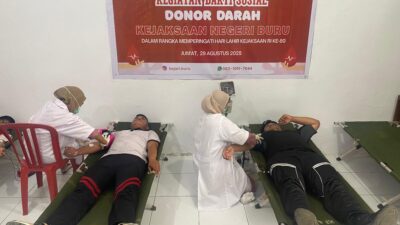 Dengan melibatkan tenaga kesehatan (nakes) dari Rumah Sakit Umum Daerah (RSUD) Namlea, Kepala Urusan Tata Usaha, Yullian H. Tomasoa, bersama 3 orang petugas Lapas Namlea mengikuti baksos donor darah yang dilakukan di halaman depan Kantor Kejari Buru.