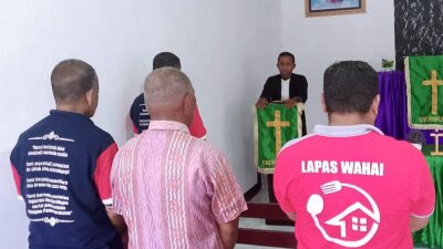 Wahai, Salawaku– Pertumbuhan rohani menjadi harapan setiap orang tak terkecuali Warga Binaan Lembaga Pemasyarakatan (Lapas) Kelas III Wahai melalui ibadah Buka Usbu di Gereja Ebenhaezer, Senin (25/8). Ibadah ini menjadi salah satu program pembinaan bagi Warga Binaan Kristen dengan melibatkan dukungan dari Majelis Jemaat Gereja Protestan Maluku (GPM) Wahai.