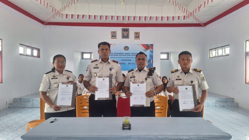 Namlea, salawaku – Lembaga Pemasyarakatan (Lapas) Kelas III Namlea secara resmi menandatangani dokumen perjanjian kinerja tahun 2026. Kegiatan ini dilaksanakan di sela-sela apel bersama awal tahun yang diikuti oleh seluruh Unit Pelaksana Teknis (UPT) dan Kantor Wilayah di bawah naungan Kementerian Imigrasi dan Pemasyarakatan (Kemenimipas), Senin (5/1/2026).