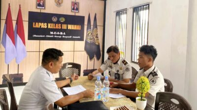 Wahai, Salawaku – Lembaga Pemasyarakatan (Lapas) Kelas III Wahai terima audiensi Komisi Pemilihan Umum (KPU) Kabupaten Maluku Tengah untuk membahas pemutakhiran data pemilih Warga Binaan, Kamis (12/2).
