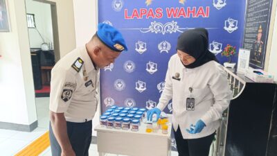 Wahai, Salawaku – Lembaga Pemasyarakatan (Lapas) Kelas III Wahai perangi peredaran narkoba di dalam lingkungan Lapas melalui tes urine mendadak bagi petugas dan Warga Binaan, Senin (6/4). Seluruh sampel yang dites menunjukkan Zero Narkoba atau 100 persen bersih dari narkotika.