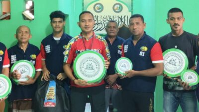 Wahai, Salawaku – Kepala Lembaga Pemasyarakatan (Lapas) Kelas III Wahai, Tersih Victor Noya, serahkan seperangkat alat musik rebana kepada perwakilan Warga Binaan di Masjid At-Taubah Lapas, Jumat (5/12).