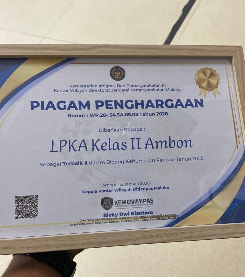 “Keberhasilan ini adalah hasil kerja tim. Ke depan, kami akan terus berinovasi dan menjaga konsistensi kinerja agar LPKA Ambon dapat memberikan kontribusi terbaik bagi organisasi,” pungkasnya.