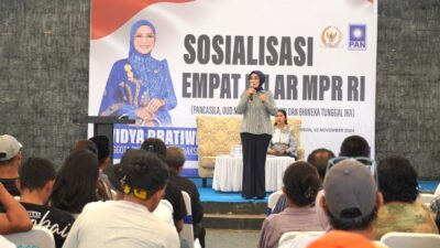 Ambon, Salawaku– Anggota Komisi III DPR RI Fraksi Partai Amanat Nasional Widya Pratiwi melakukan sosialisasi Empat Pilar Kebangsaan (Pancasila, Undang-undang Dasar 1945, Negara Kesatuan Republik Indonesia, dan Bhineka Tunggal Ika).