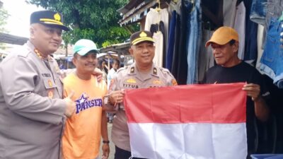 Meriahkan HUT RI ke-80, Polresta Ambon Kembali Bagikan Bendera Merah Putih