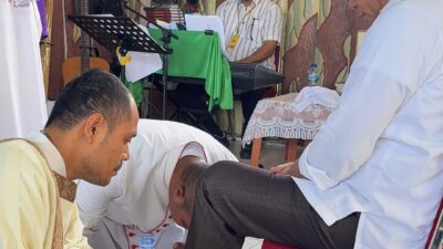 Uskup Seno Ngutra Basuh Kaki Mantan Bupati KKT Pada Misa Kamis Putih di Rutan Ambon