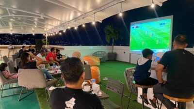 Bertempat di Sky-Bar lantai 11, para pecinta sepak bola diundang untuk merasakan atmosfer pertandingan paling ditunggu tahun ini dari ketinggian, ditemani panorama kota Ambon yang menawan.