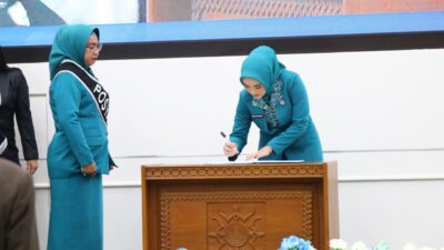 Pelantikan terhadap Penjabat Ketua TP PKK Kota Tual dilakukan oleh, Ny Nita Sadali sebagai penjabat Ketua TP PKK Provinsi Maluku, Jumat (19/7/2024) dilantai VII Kantor Gubernur Maluku.