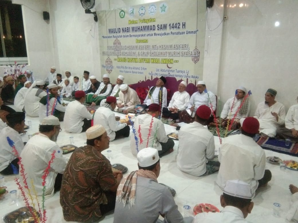 Ambon, SALAWAKU – Malam Peringatan Maulid Nabi Muhammad SWA 1442 H berlangsung dalam suasana khidmat di Masjid Hasyim Asy’ari Wara Kota Ambon, Senin (9/11).