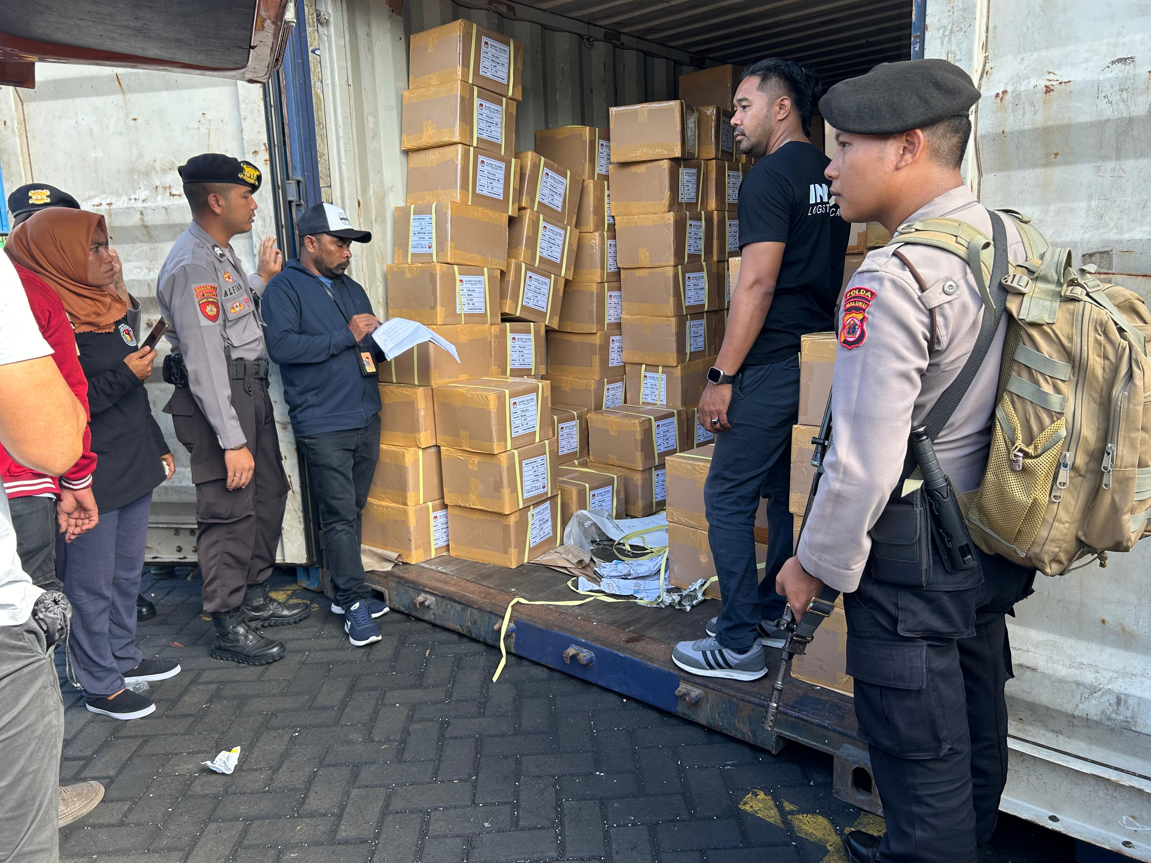 Saat dilakukan pembongkaran dan pengiriman, turut hadir pihak dari Komisi Pemilihan Umum (KPU) dan Badan Pengawas Pemilihan Umum (Bawaslu) Provinsi Maluku.