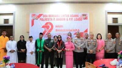 Ambon, Salawaku – Dalam rangka memperingati Hari Bhayangkara ke-79, Polresta Pulau Ambon dan Pulau-Pulau Lease menggelar doa bersama lintas agama, Senin (30/6/2025) sore. Kegiatan yang berlangsung di ruang lobi Mapolresta ini menjadi momen refleksi sekaligus upaya mempererat tali silaturahmi antarumat beragama di Kota Ambon.