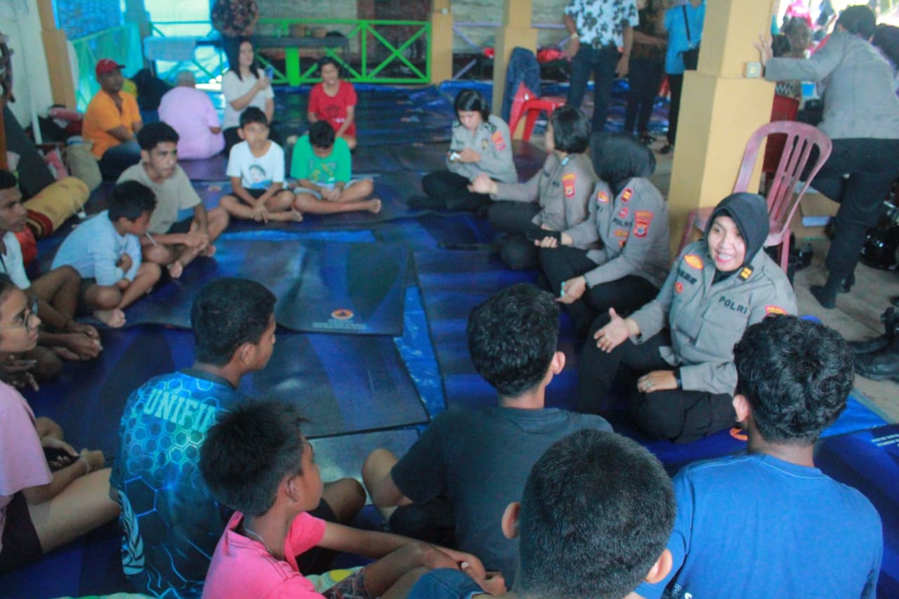 Polwan Polresta Ambon Gelar Trauma Healing Warga Hunut