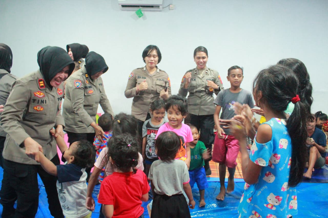 Saat kegiatan tersebut anak-anak terlihat antusias dan gembira mengikuti kegiatan, terjalin kedekatan emosional antara Polwan dengan anak-anak pengungsi, Situasi posko menjadi lebih kondusif dan penuh keceriaan.