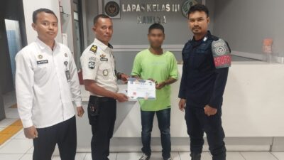 Namlea, Salawaku-Warga Binaan Lembaga Pemasyarakatan (Lapas) Kelas III Namlea berinisial SS resmi dibebaskan setelah mendapatkan program Pembebasan Bersyarat (PB), Rabu (25/2). Tak hanya pembebasan yang didapatkan, warga binaan tersebut juga diserahkan sertifikat pelatihan pengelasan yang diikuti sebelumnya pada 2024 lalu.