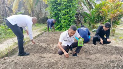Geser, Salawaku– Upaya pemanfaatan dan pengelolaan lahan kosong menjadi ruang hijau produktif terus berlanjut. Hal tersebut kembali direalisasikan Kantor Wilayah (Kanwil) Direktorat Jenderal Pemasyarakatan (Ditjenpas) Maluku, Lembaga Pemasyarakatan (Lapas) Kelas III Geser, dimana melalui subseksi pembinaan, warga binaan diajari dan dibimbing tata cara budidaya tanaman kangkung cabut ( _ipomoea aquatica_) dengan media tanah, rabu (23/07/2025). Giat tersebut bertujuan untuk menyediakan ruang pemberdayaan warga binaan melalui kegiatan pembinaan kemandirian untuk menghasilkan dan meningkatkan produksi ketahan pangan dari sektor pertanian.