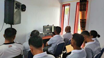 Saparua, Salawaku – Lembaga Pemasyarakatan (Lapas) Kelas III Saparua mengikuti kegiatan Monitoring dan Evaluasi (Monev) Kinerja Dukungan Manajemen dan Teknis Semester I Tahun 2025 yang diselenggarakan secara virtual oleh Kantor Wilayah (Kanwil) Direktorat Jenderal Pemasyarakatan (Ditjenpas) Maluku, Jumat Pagi (5/7/2025).