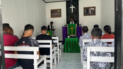 Wahai, Salawaku – Suasana penuh khidmat dan damai menyelimuti Lembaga Pemasyarakatan (Lapas) Kelas III Wahai saat Warga Binaan jalani ibadah di Gereja Ebenhaizer, Minggu (12/4).