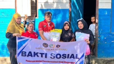 Wahai, Salawaku– Lembaga Pemasyarakatan (Lapas) Kelas III Wahai salurkan bantuan sosial (bansos) kepada warga di sekitar lingkungan Lapas sebagai bentuk kepedulian sosial terhadap masyarakat kurang mampu, Jumat (30/1). Pada kegiatan tersebut, Lapas Wahai serahkan dua paket bantuan sosial kepada warga yang membutuhkan.