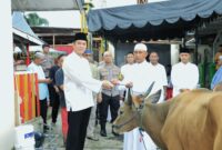 Ambon, Salawaku, Kapolresta Pulau Ambon dan Pp Lease, Kombes Pol Driyano Andri Ibrahim, SH, S.IK menyerahkan hewan kurban dalam rangka perayaan Idul Adha 1445…