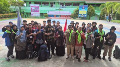 AMBON, SALAWAKU- Kepala Madrasah Aliyah Negeri (MAN) Ambon Nasit Marasabessy melepas 13 peserta angkatan pendiri Aksi Siswa Madarasah Pecinta Alam (Aksamala) Man Ambon untuk melakukan pendidikan lapangan (Diklat). Pelepasan di lakukan pelataran Man Ambon, Kamis ( 17/5/2025).